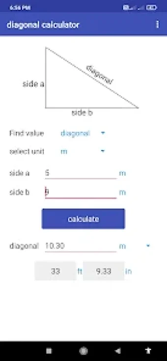 Praktisk diagonalkalkylator för Android
